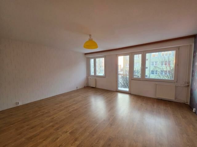 Powierzchnia 60,50m2 o funkcjonalnym układzie: dwie sypialnie, duży salon kuchnia, łazienka, wc i przedpokój.