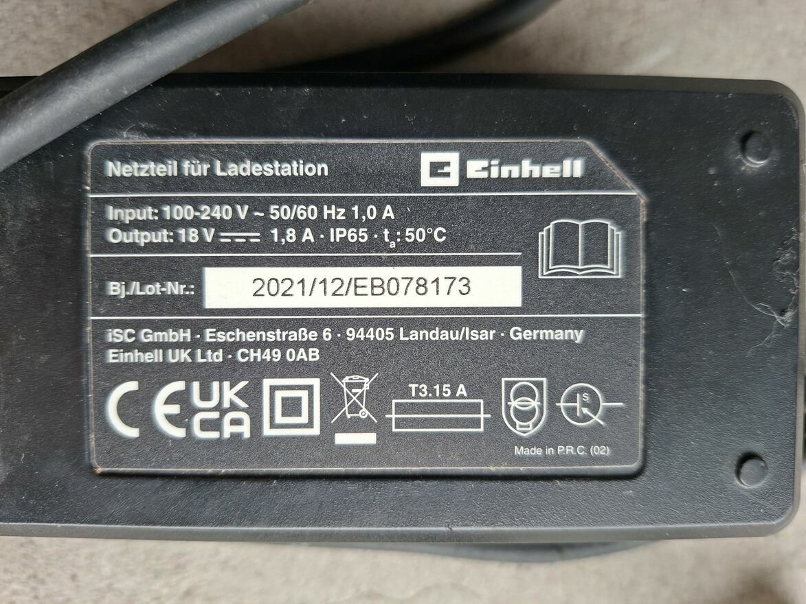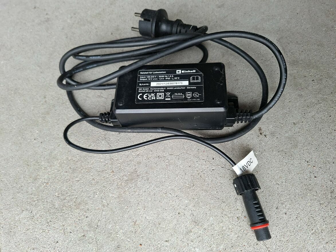 Sprzedam używany SPRAWNY w 100 % zasilacz do stacji bazy ładowania robota koszącego Einhell FreelexoDane techniczne jak na zdjęciu 18V 1,8A IP65